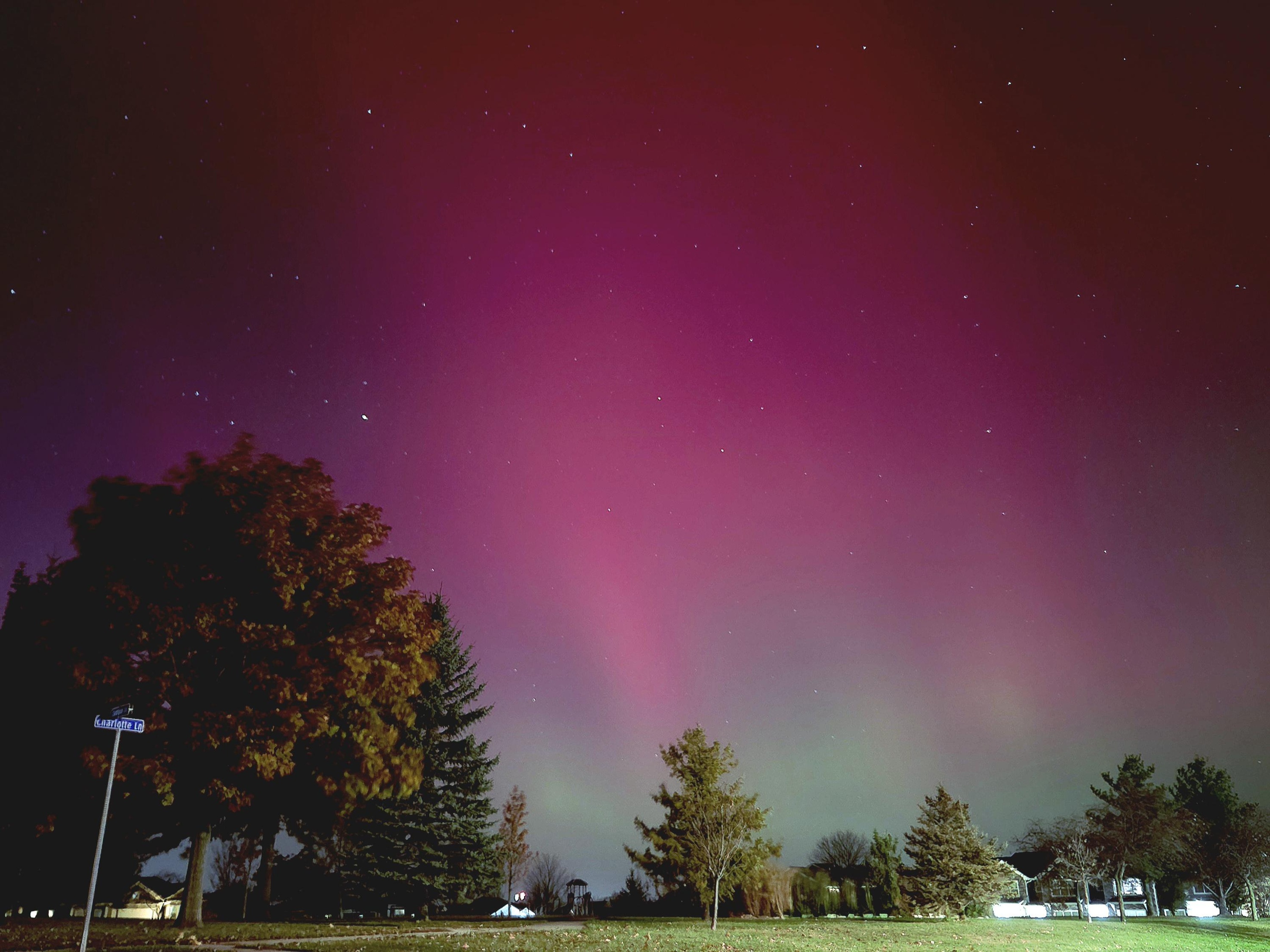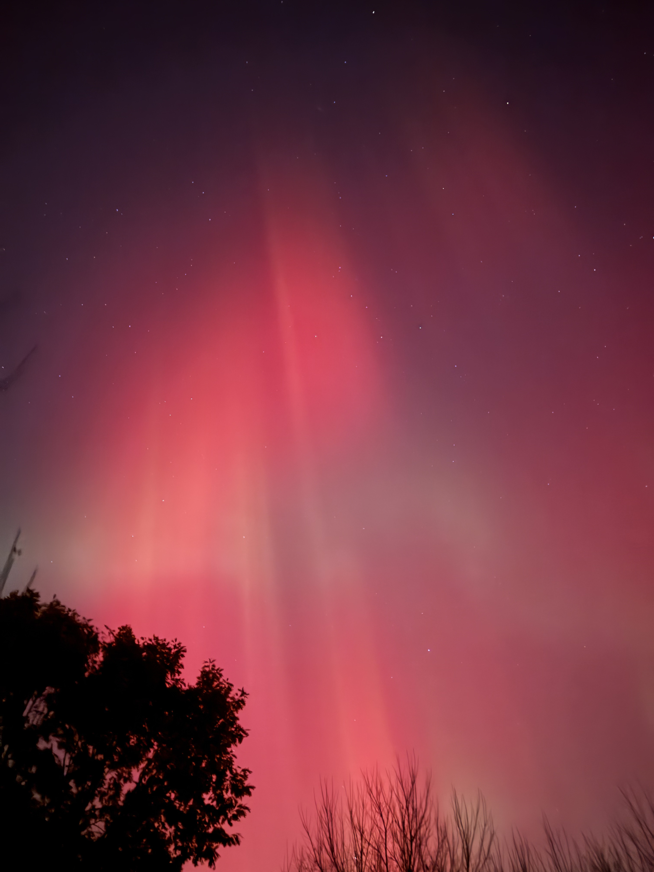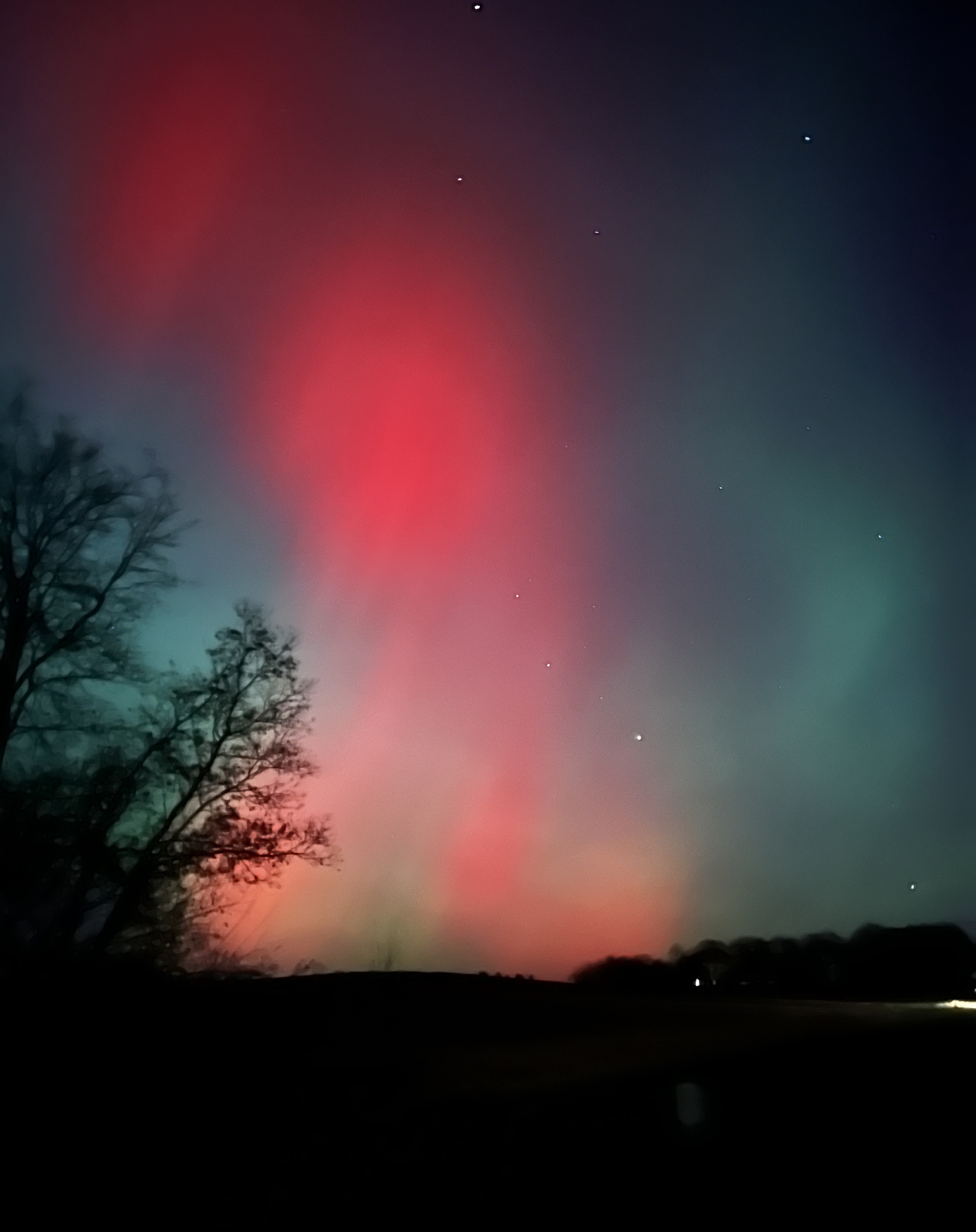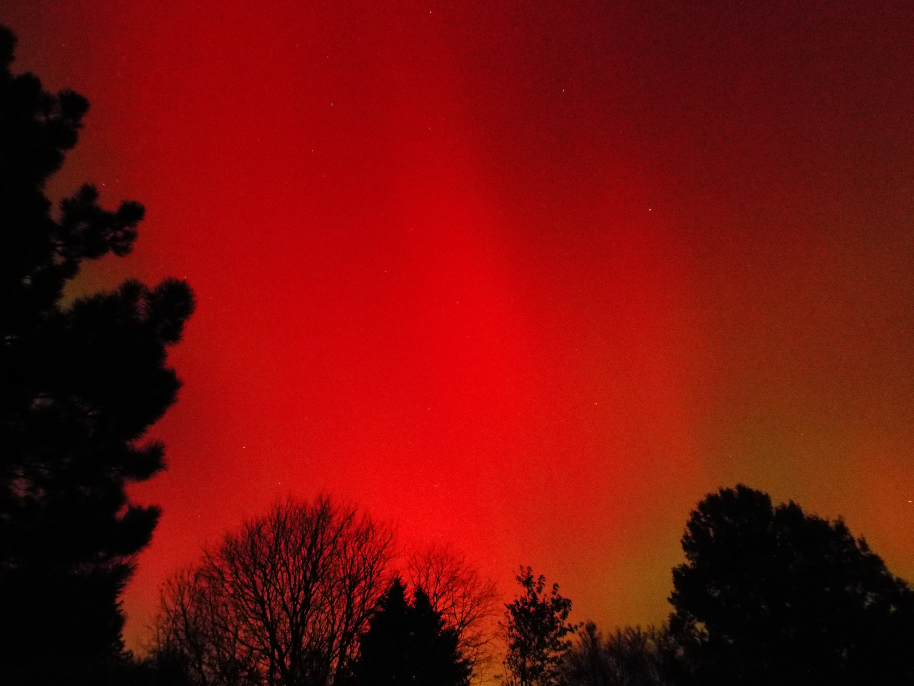 Auroras are sparked by increases in energy transferred from the solar wind to inside the Earth’s magnetic shield (the magnetosphere). They happen nightly at high latitudes, but when the Sun sends off a big blob of material and conditions that couple the energy transfer to Earth are favorable, we see an expansion of the auroral oval that can reach to very low geographic latitudes and surprise sky watchers with their sudden appearance. This energy transfer is difficult to predict or quantify. This is one aspect that auroral and space environment researchers are still researching. We did have forewarning of a set of large CMEs (coronal mass ejections) that left the Sun and were heading towards Earth. But the exact magnitude of the effects on Earth are often a gamble.
