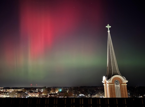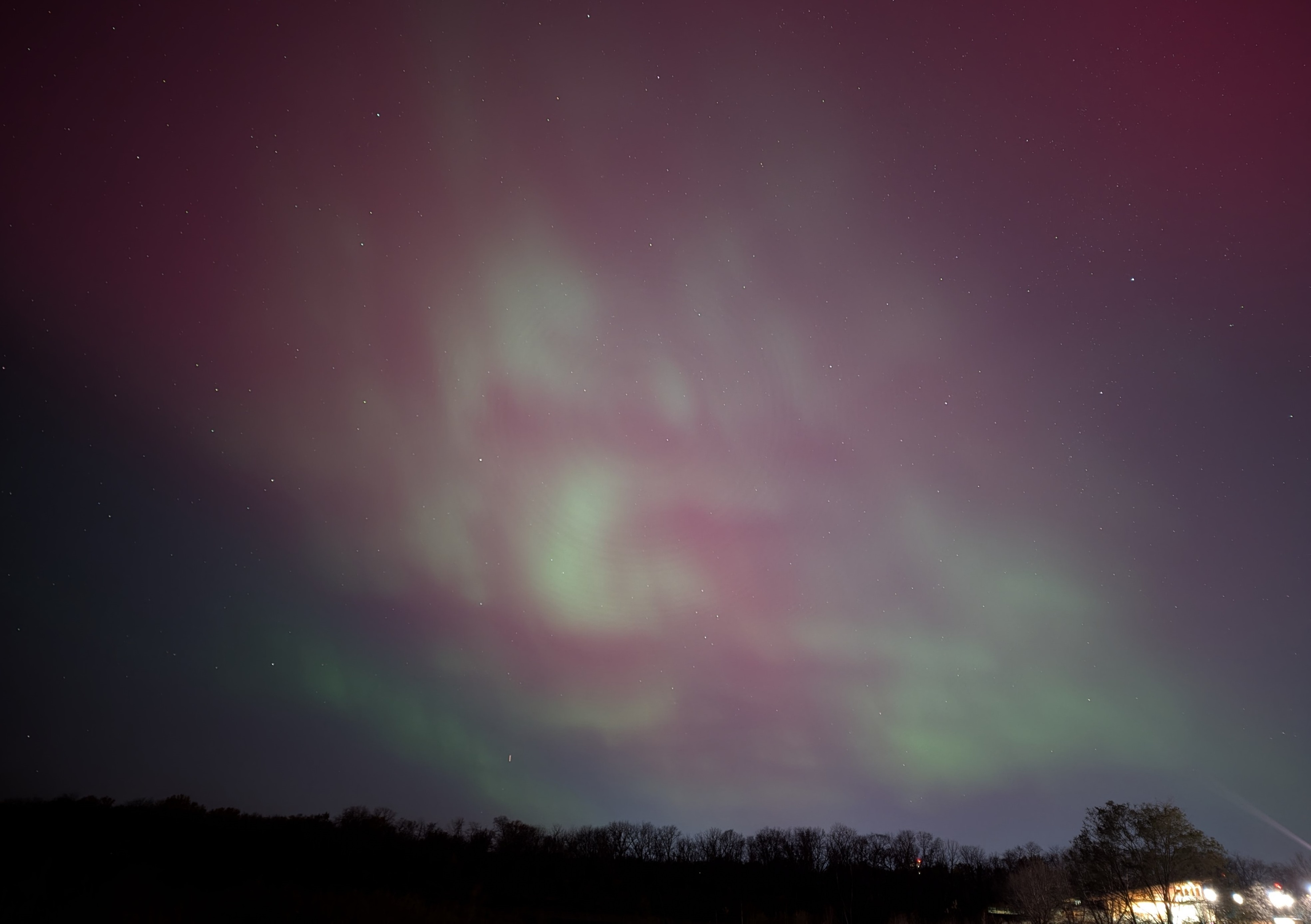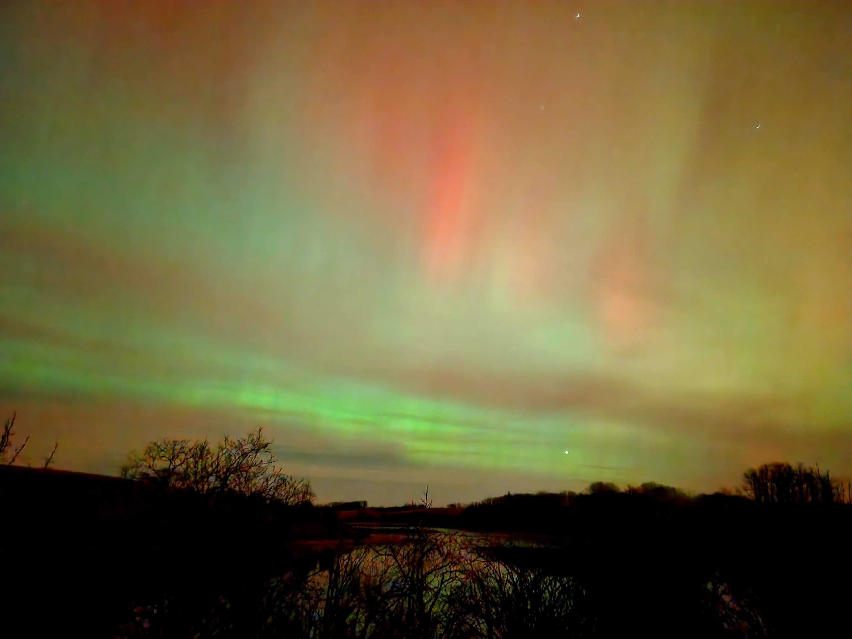 The solar storm that impacted Earth on Tuesday, November 11 (North American time) brought a display of northern and southern lights that dazzled onlookers in latitudes as far south as Texas and Arizona. In eastern Iowa, we were lucky to get completely clear skies and an auroral show that started early enough in the evening that many locals were able to watch and document the sky. See our gallery below of dynamic photos and videos taken by colleagues associated with the Physics & Astronomy department here at the University of Iowa!